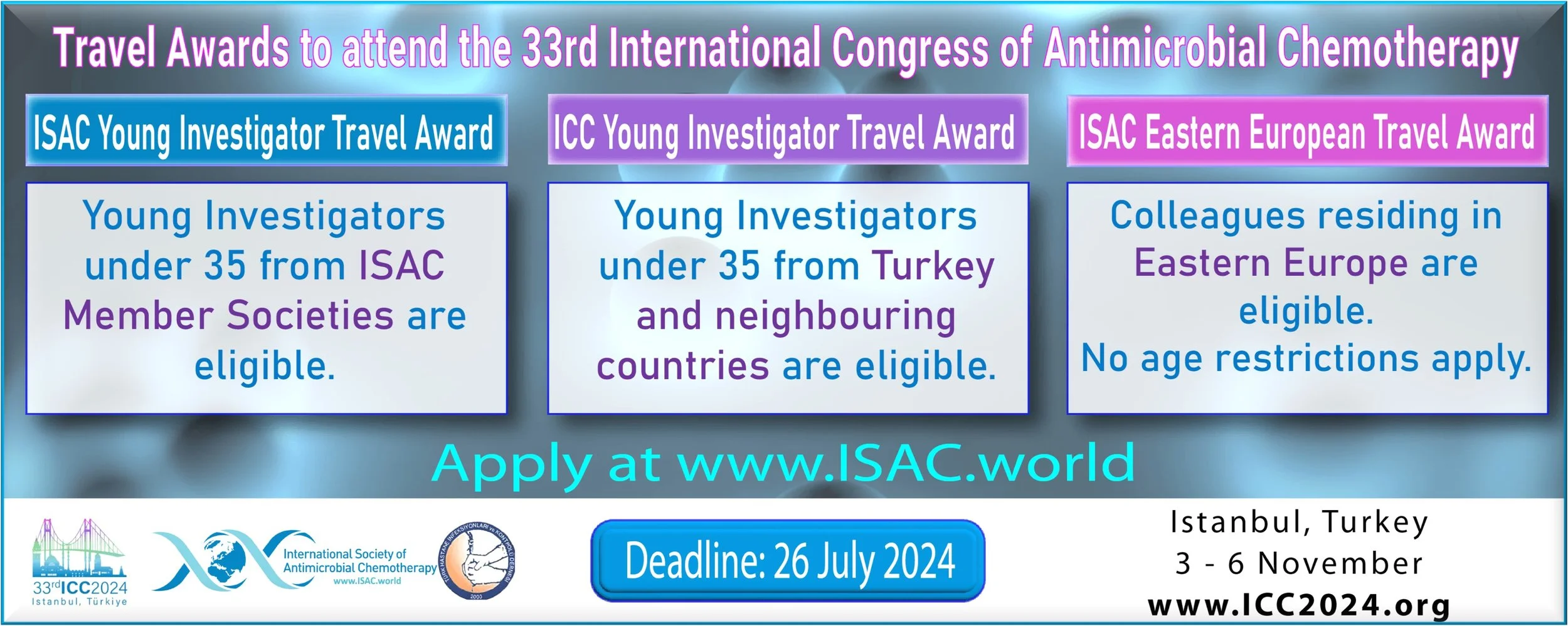There is only ONE week to submit abstracts and apply for travel grants to attend the 33rd International Congress of Antimicrobial Chemotherapy (ICC) in Istanbul, Turkey from 3 - 6 November 2024.